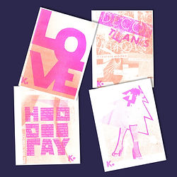This is a small, beginner-friendly workshop based in Utrecht where you can riso-print Christmas cards. It's a great way to give to friends and family and wish everyone happy holidays. It's a very relaxed and fun way to print, and you'll go home with a stack of 40 Christmas cards (with four different designs). You don't need to prepare anything, but you can if you'd like! We'll be working with markers, old magazines and collages, and the riso-printer's scanner. During the workshop, you'll create a collage or drawing, which we'll convert to riso-print! We'll do this entirely analog, so you won't need a laptop or other digital media. Feel free to bring your own magazines, pictures, and text to use. You'll also receive 40 of your own handmade cards on thick A6 biotop paper, snacks, and personal guidance.